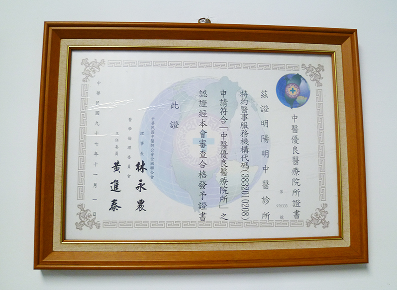 中醫優良醫療院所證書